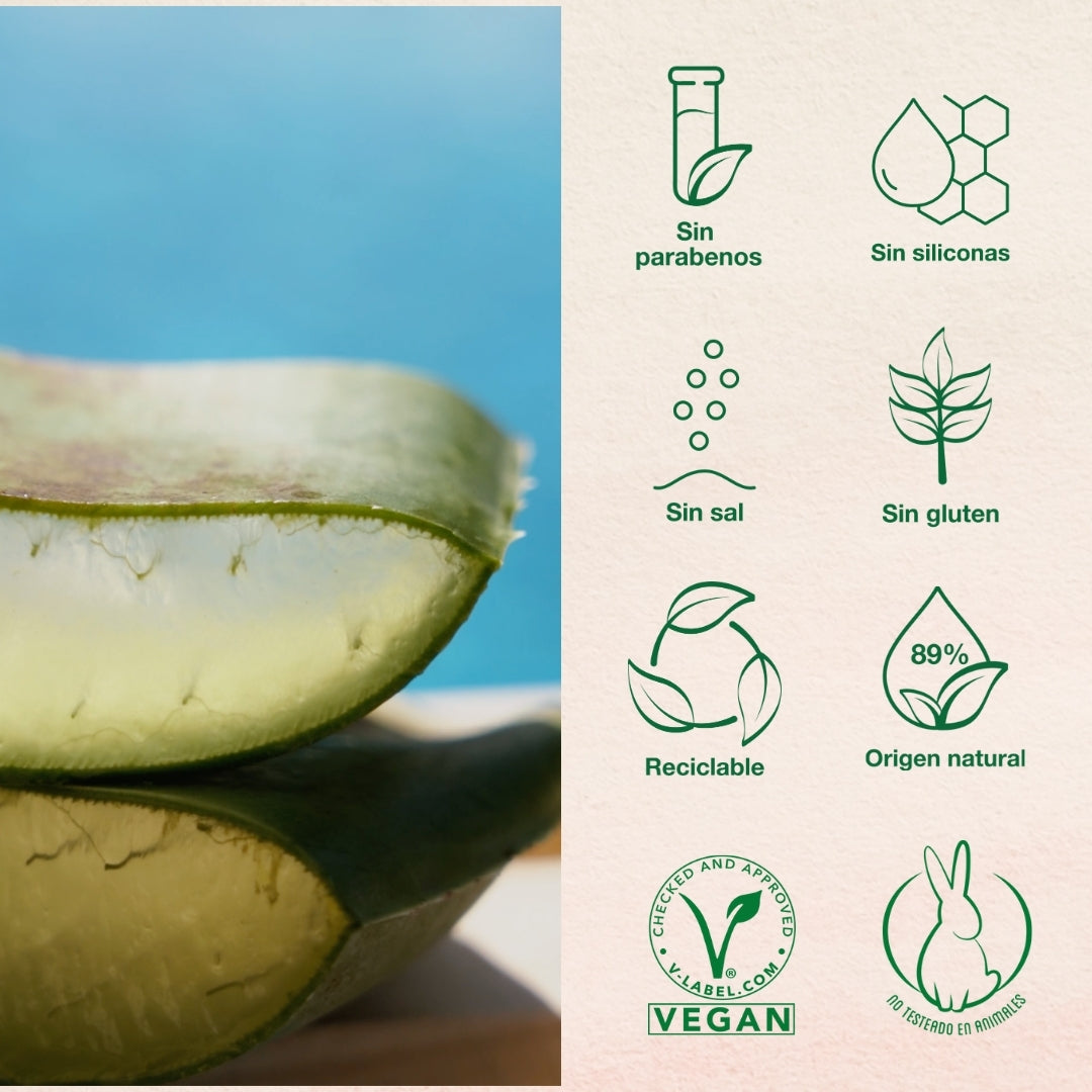 60% de Aloe Vera Orgánico, Ortiga, Pantenol & Keracyn.