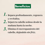 Hidrata, nutre y revitaliza: ideal para el tratamiento de cabellos dañados, quebradizos y teñidos.