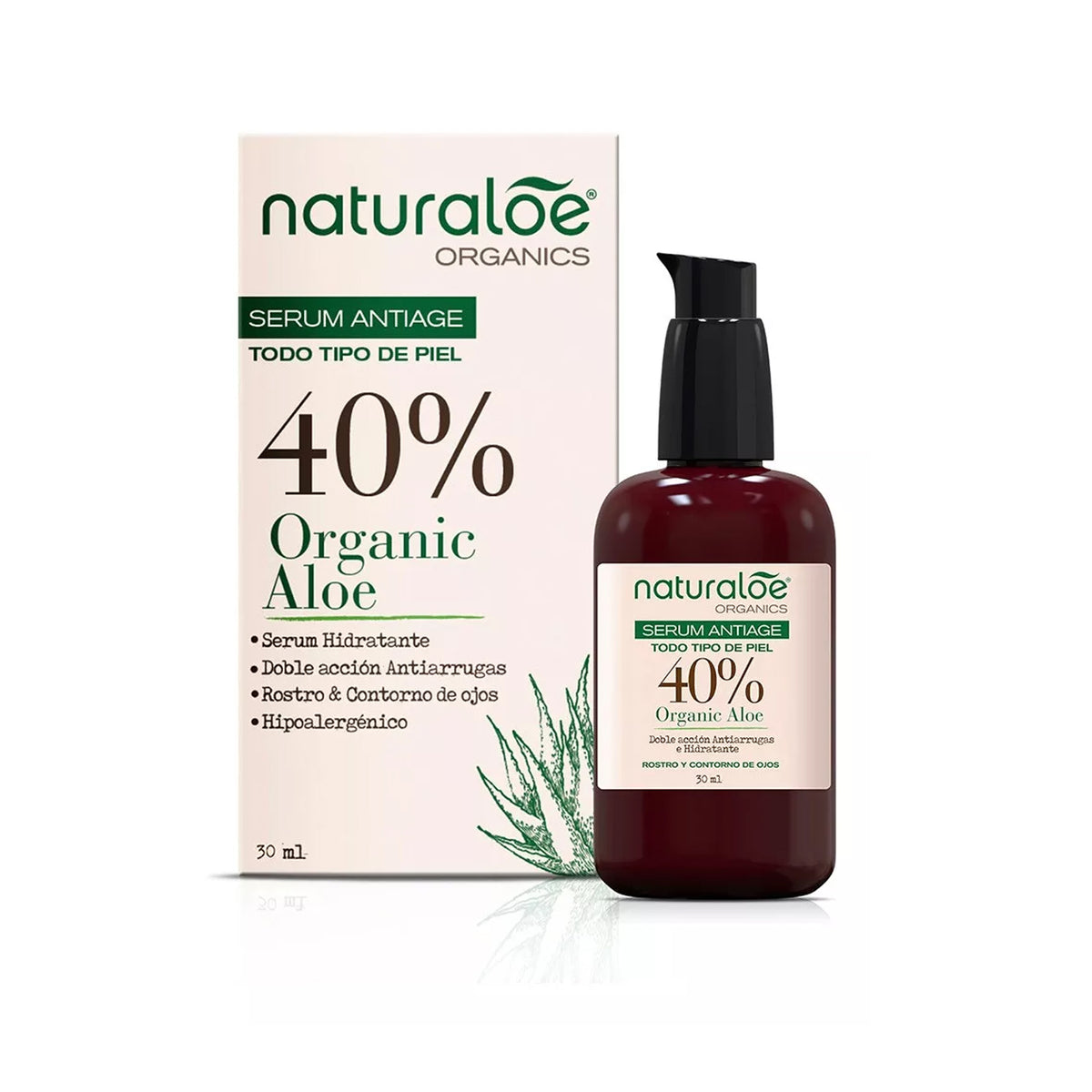 Paso 2 Serum antiage: Formulada con 40% de Aloe Vera Orgánico + Jengibre, Maca + peptidos. 30ml